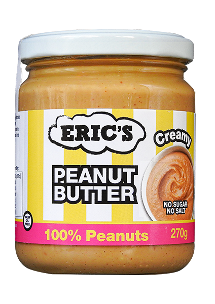 Voici le peanut butter Eric's 100% cacahuète, sans sucre, sans sel, sans huile. Idéal pour les sportifs, la cuisine et les puristes. Version creamy.